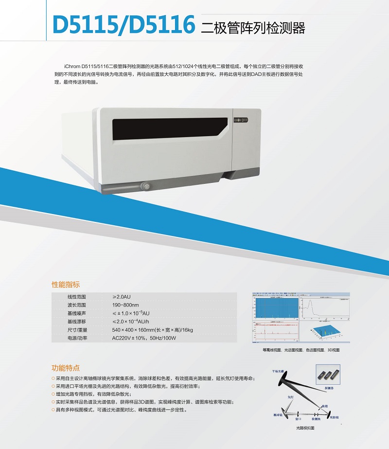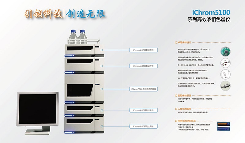 iChrom 5100高效液相色谱仪是大连依利特分析仪器有限公司凝结二十载智慧结晶,研发的具有自主知识产权的高效液相色谱仪。该产品同时也是国家重大科学仪器设备开发专项(2012YQ120044)的重要研发成果之一。