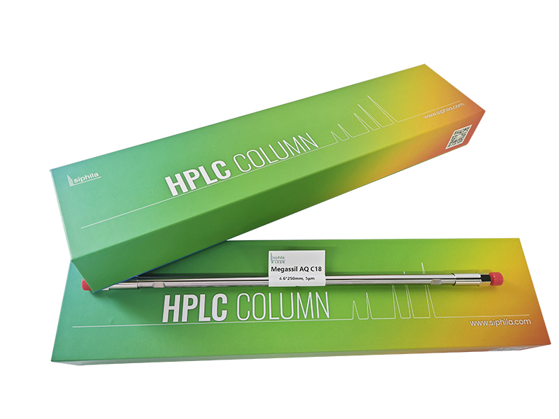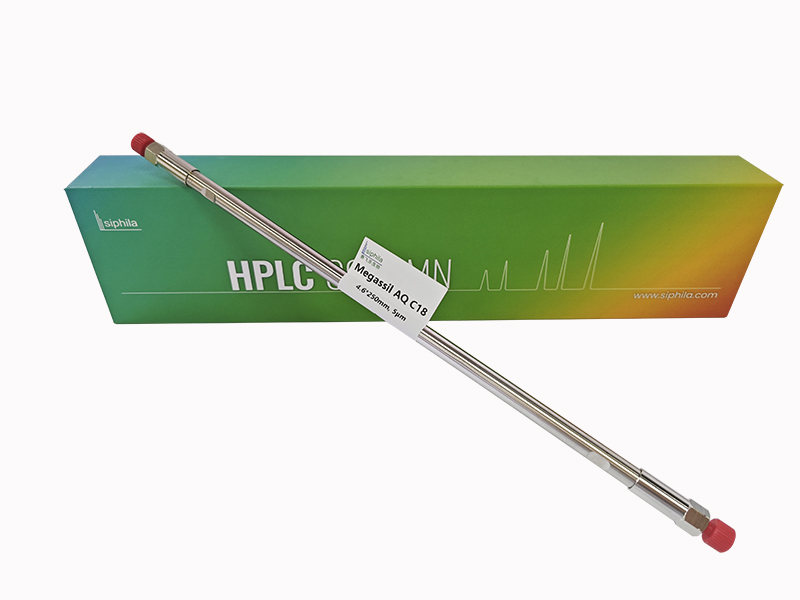 Megassil AQ C18填料使用表面惰性处理和多官能团键合技术,在提升表面极性的同时有效降低残存硅羟基的数量,可在100%水相条件下安定使用。
