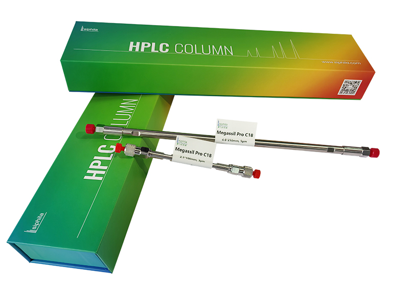 Megassil Pro C18色谱柱填料基于基体渗透技术,采用特殊封尾技术消除非特异性吸附位点,耐污染能力得到提升并且通过控制C18基团导入量,使Megassil Pro C18色谱柱表现出适中的表面极性和疏水性。